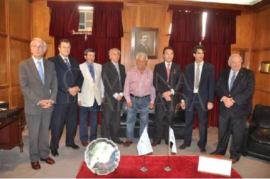 Enrique Martínez de Hoz, representando al Hipódromo de Maroñas entregó el trofeo instituido para el propietario del ganador, Carlos Menditeguy.