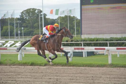 NACIDO Y CRIADO EN EL HARAS EL MALLIN Y CON LOS COLORES DE LAS CANARIAS, EL ZAINO DORADILLO HIZO UN PASEO DE SALUD, GANÓ POR 13, EN NOTABLES 1´8”72