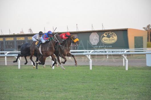 en el Haras La Pasión de la familia Benedicto, lo entrena José Orlando González y lo llevó a la victoria Brian Enrique, que en la última concretó un magnífico triplete de victorias. El ganador ha salido a las pistas en cuatro oportunidades, logrando un primero y un cuarto, marcando 1´35”12 para el tiro de la milla con parciales de 25”43 los 400, y 47”90 los 800, poquito más que en el cotejo jerárquico, en el Bustillo (G2), con un tercero de 1´11”75 los 1200 metros.