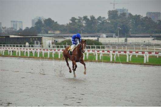 Y se fue para los partidores desplegando toda su potencia en el barro, tras más de un año que estuvo ausente.