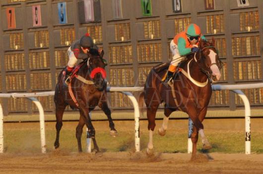 La carrera fue un mano a mano desde el salto hasta los 300 finales, oreja a oreja los dos caballos, Storm Rosado en los palos y Radio Call poniéndole el cuchillo toda la vuelta. Más atrás Malicius, El Safado y en el fondo Da Card y Van Perpignan. Sin variantes recorrieron opuesto, codo y se internaron en la recta, donde los cinco kilos que recibía el del Stud Yunta Brava de Tucumán, comenzó a separarse del hijo de Storm Surge, para llegar de orejitas paradas al disco triunfal con cuatro largos de luz. Storm Rosado que recibió flor de paliza, pudo con lo justo rescatar y defender el segundo lugar, por ¾ de cuerpos ante el embate que le llevó en los metros finales El Safado, luego pasó Malicius a cuatro cuerpos, a seis más da Card y cerrando la marcha Van Perpignan a otros cuatro, a poco menos de 20 cuerpos. Se tomó desquite el Bahiaro y cómo. A la brevedad vendrá el desquite, seguramente, aunque con poca diferencia en los kilos si de Handicap hablamos.
