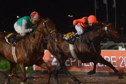 Pisando el tiro derecho final, y abrigado a los palos, por momentos tratando de salir de al lado de los palos, estaba encharcada esa parte de la cancha, pero con solvencia recorrió los últimos metros. El pupilo de Gustavo Scarpello lo pudo seguir hasta los 300, donde comenzó a ceder, y entonces uno miraba para atrás y mucho no había, hasta que arrancó el caballo de Falero. Salió como despepitado desde el fondo por el medio de la cancha, volando acortando a zancada pura, la diferencia que le había sacado el líder. En los metros finales comenzó a mermar el pupilo de Neer, para que a pasos del disco, Pablo Falero alcanzara y festejara como cuando era pibe allá por Colonia. El hombre estaba feliz, contento, había frotado la lámpara otra vez y otro gran triunfo del mejor, con Garabito. Medio cuerpo sobre Angelado que hizo gran carrera, a tres largos Virginias Triomphe, a uno Iberian Cause, a otro más Seattle Doral, a dos y medio ls única yegua del lote, Victorius Rye, a tres Touareg, a uno más Casual Dream y cerrando la marcha a tres cuerpos Ex Vador, herido, seguramente con trabajo para el veterinario.