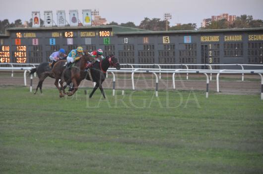 En los 200 todo seguía igual, pero ya con Macedonia embalado para atacar a pasos del disco y ver si con la furia que traía podía alcanzar al puntero que no aflojaba un tranco, a tiempo que Emperor Candy atacaba firme. Los metros finales fueron de alto voltaje, Hat Tenor a a todo o nada y Macedonio ya igualándolo para sacarle pequeña ventaja en el mismo disco.