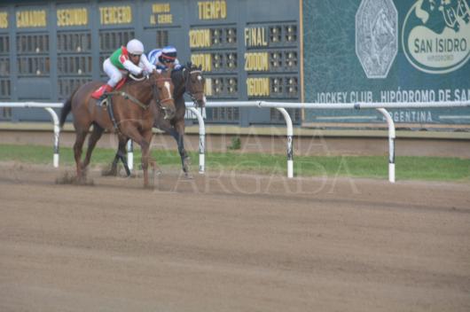 VIAJÓ TERCERA TODA LA VUELTA, EN PUNTITAS DE PIE ATACÓ POR MEDIA CANCHA LA HIJA DE GRAND REWARD Y TRAS EMPAREJAR A INCA SOLEADA, SE ESCAPÓ CON EDUARDO RUARTE HACIENDO EL AVIONCITO. AHORA SU RECORD ES DE OCHO TRIUNFOS EN 22 SALIDAS A LAS PISTAS