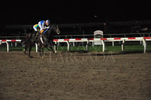 LUCIENDO LOS COLORES DEL STUD HARAS SAN BENITO, EN LAS EXPERTAS MANOS DE CARLOS DANIEL ETCHECHOURY Y CON UNA CONDUCCIÓN IMPECABLE DE PARTE DE FABRICIO BARROSO, LA NIETA DE INTÉRPRETE PASÓ DE LARGO, FÁCIL, EN EL FINAL, DEJANDO NOTABLE IMPRESIÓN.