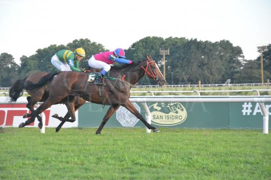 Una carrera anterior había ganado con Ajool el Clásico Invasor (G3) en la diagonal y ahora en los dos kilómetros del otro jerárquico corrido en San Isidro. Trajo toda la vuelta en puntitas de pie a Flor de Benicio, mientras que en la punta estaban Capa Que Sí, Avellana Sam, Valissam, Cycling, Flor de Benicio, Tinquiririca y cerrando la marcha Genelle. Así dejaron el opuesto y el codo, para pisar el tiro derecho con la del San Lorenzo en la punta, pero se le fueron encima todas, Avellana Sam junto a los palos, a media cancha Cycling, Valissam, a tiempo que por media cancha salían con furia Flor de Benicio y Sweet Mana, llegando al disco con 3/4 de cuerpo de ventaja para la hija de Lingote de Oro sobre la Easing Along, a la misma distancia, tercera, Genelle, que pisó la recta en el último lugar, prometiendo el más alto dividendo de la prueba. A medio más Tinguiririca de gran carrera y quinta a ¾ cuerpo, pasó Cycling, en un final bien de San Isidro.}