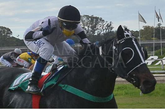 CORRIDA EN EL FUEGO CON DECISIÓN DE PARTE DE GABRIEL BONASOLA, LA ZAINA SE COLOCÓ TERCERA EN POS DE LAS LÍDERES, POR EL MEJOR LUGAR DE LA CANCHA DEL PASTO PALERMITANO, Y ABRIÉNDOSE, A PURA POTENCIA, ATACÓ DE FIRME PARA CRUZAR CON LUZ