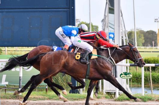 Fue el defensor de la chaquetilla de la gaviota el que salió a marcar los parciales, ante un tímido Agnolo (Angiolo) que nunca buscó decidido la punta. Mientras el ganador que entrena Dario Periga en La Pampa corría de menor a mayor ubicado promediando el pelotón por el exterior del mismo, al pisar la señal demarcatoria de los 200 metros el ganador capitalizó la ventaja en la lucha que arrastraba con el descendiente de Hit it a Bomb desde el codo estirando sobre la raya medio pescuezo en 1'10"76/100 de pista normal. del primero al sexto hubo apenas 2 cuerpos de ventaja en un verdadero carreron.