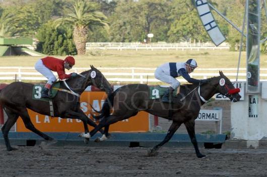 En cuatro saltos ya estaban en la recta. Y por el centro de la pista, sacando pecho que tiene y mucho y de orejitas paradas se fue Cherokee Sale. Pero Farsante Célebre que se había mandado por dentro no quería perder y le dio pelea. Recorrieron los metros finales y siempre se lo veía ganador al del Arroyo de Luna, pero el de San Millán seguía porfiando. Y como bala terminaban, Carmelinda por fuera y Empire Aztec por dentro.