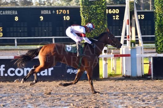 Juan Cruz Villagra se encargó de orientar al disco a la pensionista de Guillermo Frenkel Santillán, que se desempeñó expectante en las primeras de cambio, manifestando un accionar que daba a inferir la facilidad de sus movimientos, lanzándose a correr en plena recta definitiva, cuando por centro de cancha aceleró el ritmo para adueñarse de la batuta y dirigirse al espejo con autoridad.