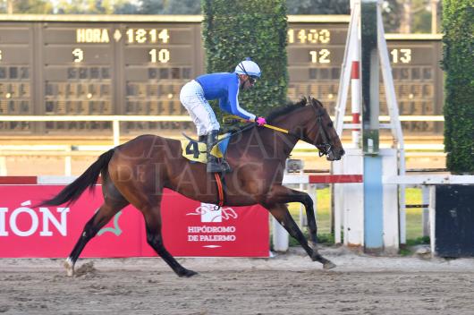 Orientado por Juan Cruz Villagra bajo las instrucciones de Miguel Cafere, el imponente zaino que dejó en balanza 555kg, salió disparado desde el partidor para asumir el comando de entrada, siendo acosado por Sun is a Bomb en parte del trayecto, hasta que al desembocar a la recta final se desprendió de este, dirigiéndose a la meta con sus firmes zancadas para posteriormente soportar el empuje de Santiago Canalla, que entró con fuerzas en los metros decisivos pero sin poner en riesgo el triunfo del nieto de Sebi Halo.