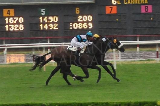 Y cuando estaban por pisar tierra derecha, 24”60 los 400; 50”64 los 800; las doce cuadras en 1´18”10 y la milla en 1´44”52, Mario Fernández se fue de los palos, ingresando abierto a la recta final. Rápido se le puso cerca la única muchacha del grupo, amagaba otra vez Mariachi Town junto a las tablas y abierto amagaba, sólo eso El Seriote. Y desde bien temprano se trenzaron los dos pupilos de Hugo Pérez, palo va palo viene. Y dio toda la impresión que el de Mario se llevaba para afuera a la del Ni Manor. Y más, digo, cuando en los 50 finales y ante ni poder castigar de derecha, porque Ramella le había puesto la yegua al lado (525 kilos contra 457), Marito tuvo que pegar de zurda.
