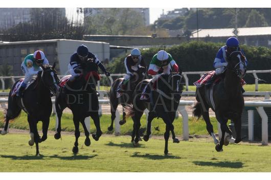 A pasos del disco Edurdo Ortega Pavón acarició a su caballo, cómodamente, mientras que atrás, a tres largos, cruzaban en una línea Mr Glad, que frenó a Sacro Man por medio cuerpo, mientras que en cuarto lugar pasó South Modern al pescuezo.