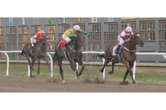 Faltando 50 metros, Rousing emparejaba al puntero que ya no quería más y lejos, los demás disputaban el tercer puesto.