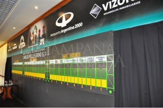 Unicamente en el Carlos Pellegrini, los responsables directos de responder a la consulta del maestro de ceremonia, Marcelo Durán, podían levantarse y ubicar el cartel adhesivo en el partidor elegido. De esa forma pasaron Alfredo Gaitán Dessié, Carlos Linares, Ernesto Romero, Hugo Pérez, Miguel Alejandro Díaz, profesionales extranjeros, incluso fueron al frente con los ejemplares de brasil y de Perú, nuestros queridos Jorge Ricardo y Jacinto Herrera y en el caso de Juan Carlos Maldotti, como siempre el jinete es de salir adelante, Noriega colocó el cartel de Eternal Fire en el lugar número uno. Zeide Isaac va en el 7 y es bravo. Lingote de Oro va con el 22, al lado de la avenida.