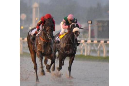La hija de Easing Along y la excepcional Lágrimas de Oro, del Stud El Alfalfar, debe revertir, el “0-2” de Stormy Publisher y desempatar el “1-1” contra Liriope. Se la nota más serena en los partidores y viene de ganar una linda carrera en el césped, en el Clásico Miss Terrible (N/G), conteniendo las embestidas de la útil Ventana de Gala y de Satarain, que después venció, y muy bien en un hándicap en La Plata. La conducirá Edwin Talaverano y la entrena Roberto Andrés Pellegatta.