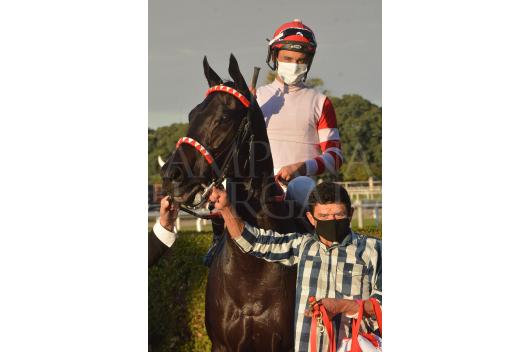 La puntera del lote fue Sweet Golden que debutó allá por fines de agosto de 2020 en 1000 metros, en este piso, llegando a casi 30 cuerpos, bien jugada, me lo imagino a “Tatino” preguntándose qué le había sucedido a la hermanita del extraordinario Miriñaque. De regreso a boxes, herida la zaina se quedó un tiempito bastante largo, cerca de siete meses escuchando la charla y los mimos de su Entrenadora María Cristina Muñoz, Pellegrini del año, nada menos. Otra vez el kilómetro, pero la reprise se siente. Al mes cambió su perfil, porque encimó a las líderes, peleó a muerte, quedándose en los metros finales, llegando a casi tres largos de Muxagata, la que dimos en campana en la carrera anterior y daba 54 pesos y había quedado cerca, para luego lograr el triunfo, eso en el césped de San Isidro.